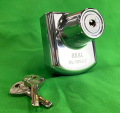 2.キーシリンダーを最後まで押し込んで、鍵を反時計回転方向に回して、本機をロックして下さい。